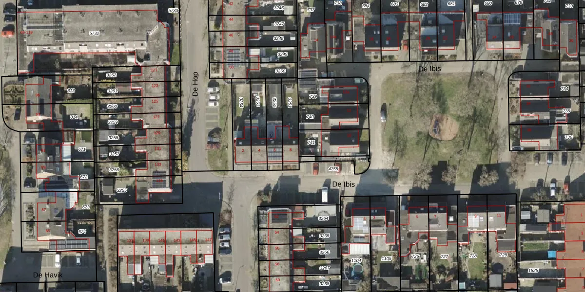 Gebruik de zoekbalk of klik op een perceel voor informatie over de adressen binnen dit perceel.