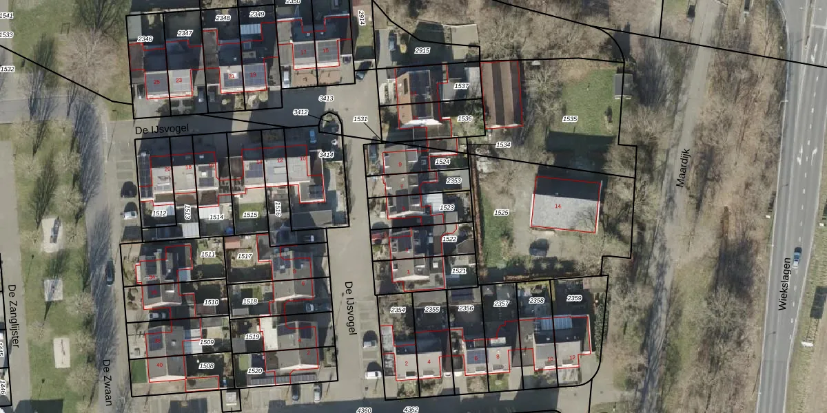 Gebruik de zoekbalk of klik op een perceel voor informatie over de adressen binnen dit perceel.