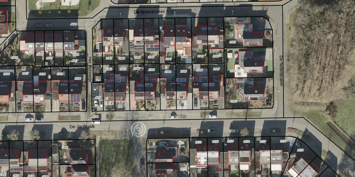 Het perceel waarop De Jachtvalk 102 staat heeft een oppervlakte van 238 m². Dit is een middelgroot perceel. De perceeloppervlakte wordt geregistreerd door het Kadaster. Gedetailleerde informatie over de maten van dit perceel kunt u vinden in het rapport Kadastrale kaart met maatvoering van De Jachtvalk 102.