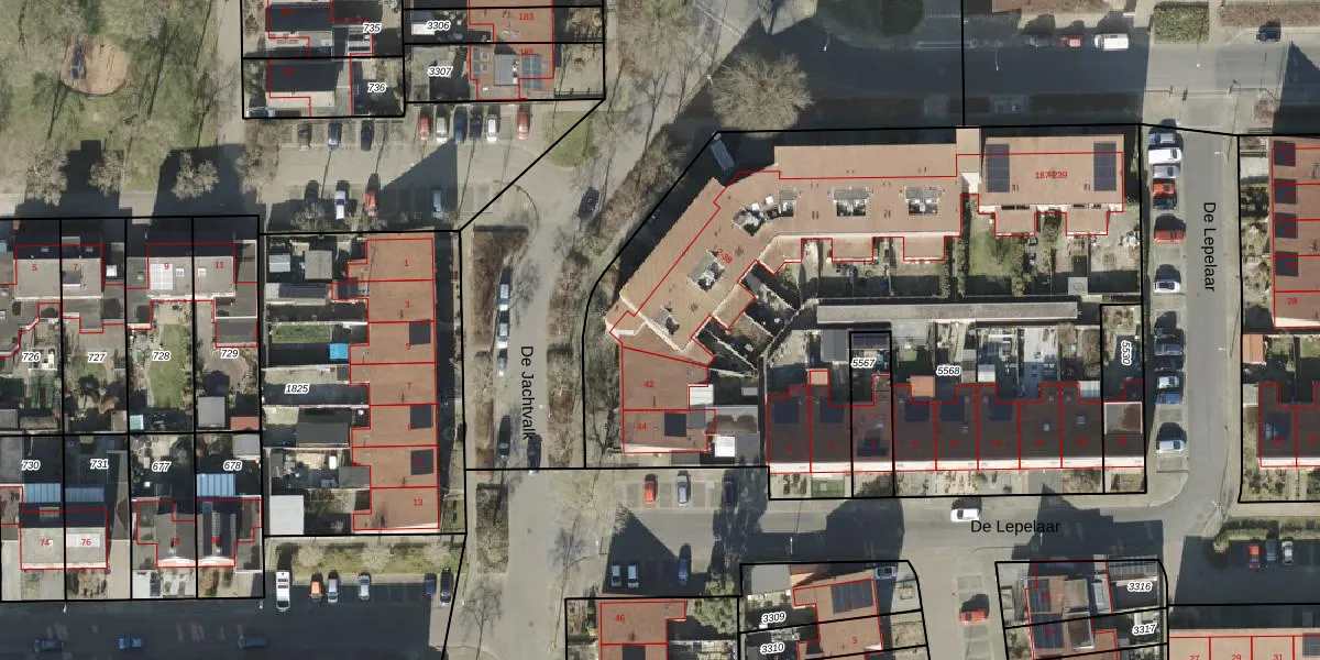 Het perceel waarop De Jachtvalk 30 staat heeft een oppervlakte van 3995 m². Dit is een zeer groot perceel. De perceeloppervlakte wordt geregistreerd door het Kadaster. Gedetailleerde informatie over de maten van dit perceel kunt u vinden in het rapport Kadastrale kaart met maatvoering van De Jachtvalk 30.