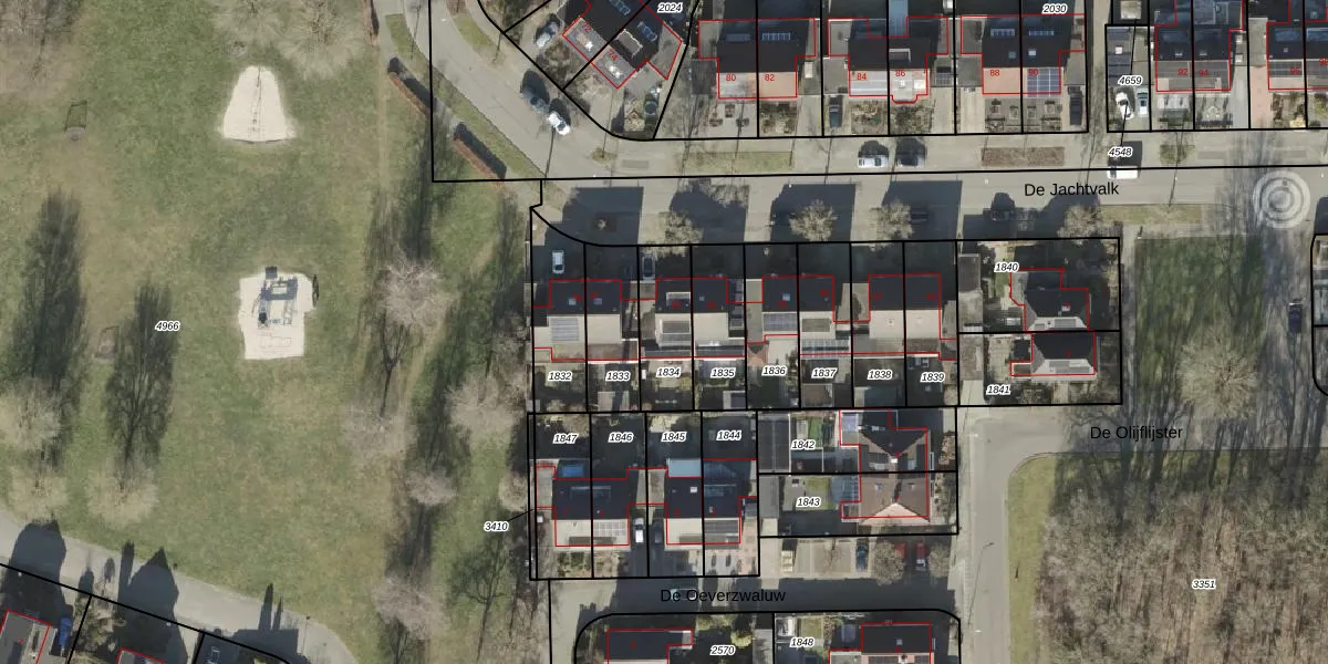 Het perceel waarop De Jachtvalk 39 staat heeft een oppervlakte van 200 m². Dit is een middelgroot perceel. De perceeloppervlakte wordt geregistreerd door het Kadaster. Gedetailleerde informatie over de maten van dit perceel kunt u vinden in het rapport Kadastrale kaart met maatvoering van De Jachtvalk 39.