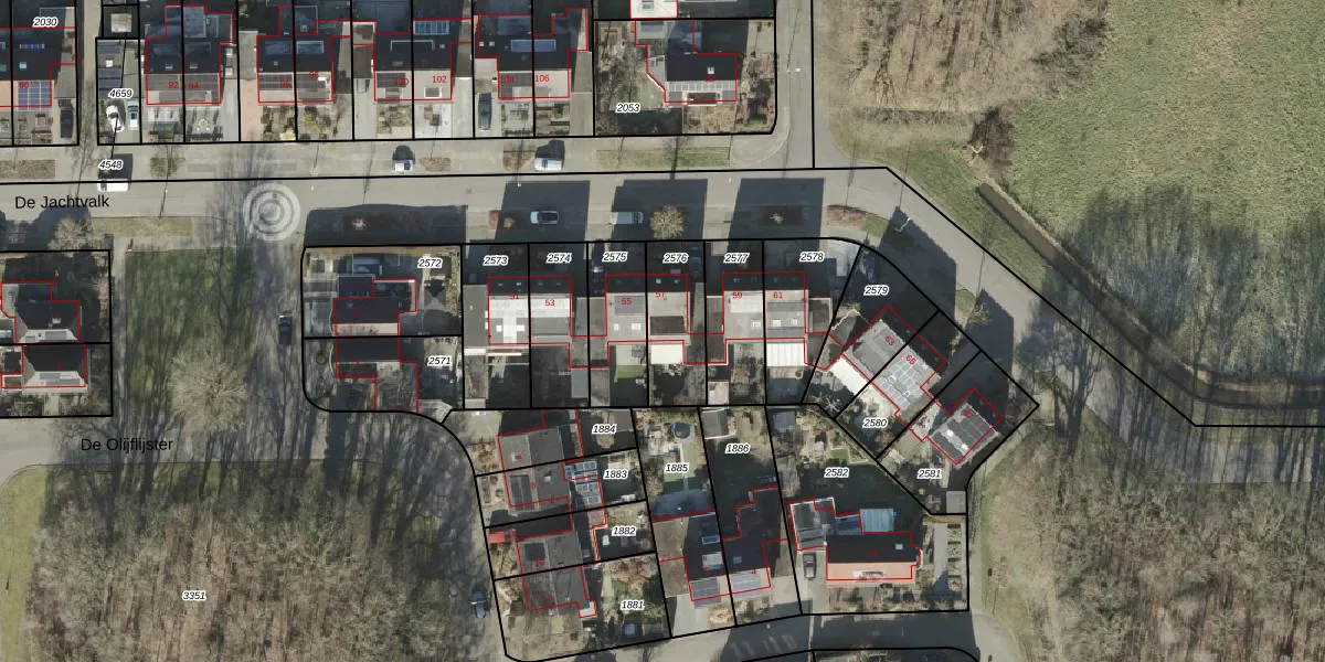 Het perceel waarop De Jachtvalk 57 staat heeft een oppervlakte van 222 m². Dit is een middelgroot perceel. De perceeloppervlakte wordt geregistreerd door het Kadaster. Gedetailleerde informatie over de maten van dit perceel kunt u vinden in het rapport Kadastrale kaart met maatvoering van De Jachtvalk 57.