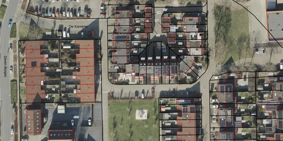 Het perceel waarop De Karekiet 37 staat heeft een oppervlakte van 124 m². Dit is een middelgroot perceel. De perceeloppervlakte wordt geregistreerd door het Kadaster. Gedetailleerde informatie over de maten van dit perceel kunt u vinden in het rapport Kadastrale kaart met maatvoering van De Karekiet 37.
