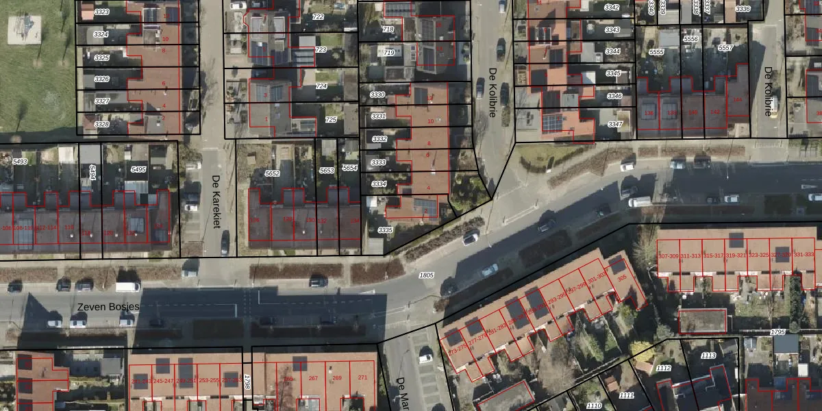 Gebruik de zoekbalk of klik op een perceel voor informatie over de adressen binnen dit perceel.