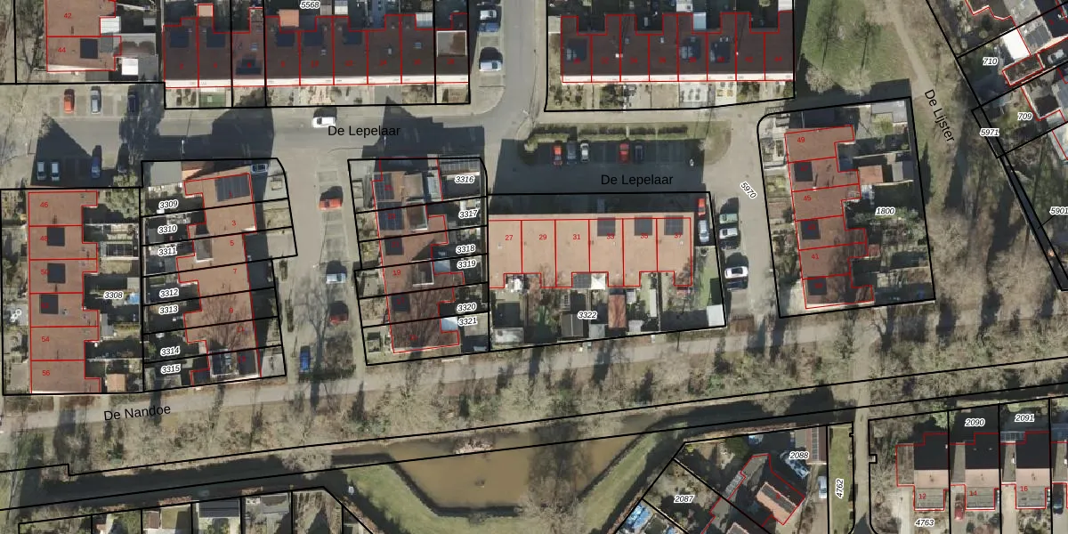 Het perceel waarop De Lepelaar 29 staat heeft een oppervlakte van 1177 m². Dit is een zeer groot perceel. De perceeloppervlakte wordt geregistreerd door het Kadaster. Gedetailleerde informatie over de maten van dit perceel kunt u vinden in het rapport Kadastrale kaart met maatvoering van De Lepelaar 29.