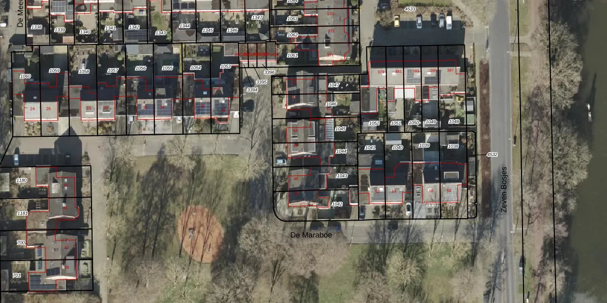 Gebruik de zoekbalk of klik op een perceel voor informatie over de adressen binnen dit perceel.