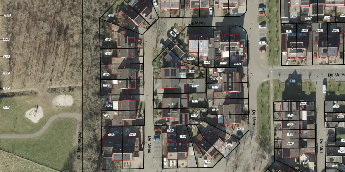Het perceel waarop De Mees 12 staat heeft een oppervlakte van 269 m². Dit is een middelgroot perceel. De perceeloppervlakte wordt geregistreerd door het Kadaster. Gedetailleerde informatie over de maten van dit perceel kunt u vinden in het rapport Kadastrale kaart met maatvoering van De Mees 12.