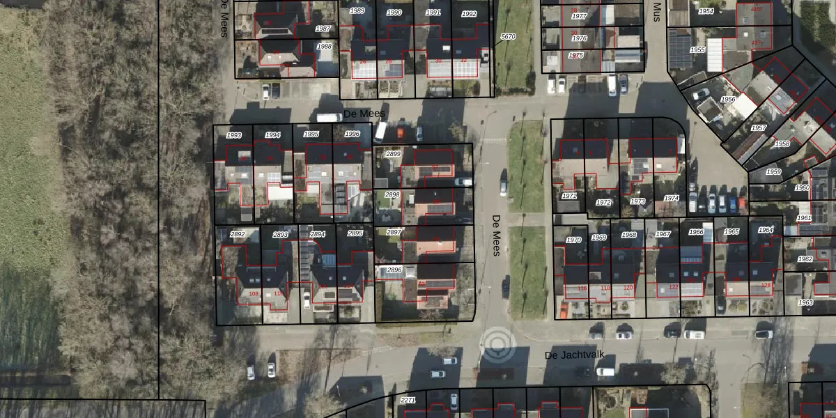 Gebruik de zoekbalk of klik op een perceel voor informatie over de adressen binnen dit perceel.