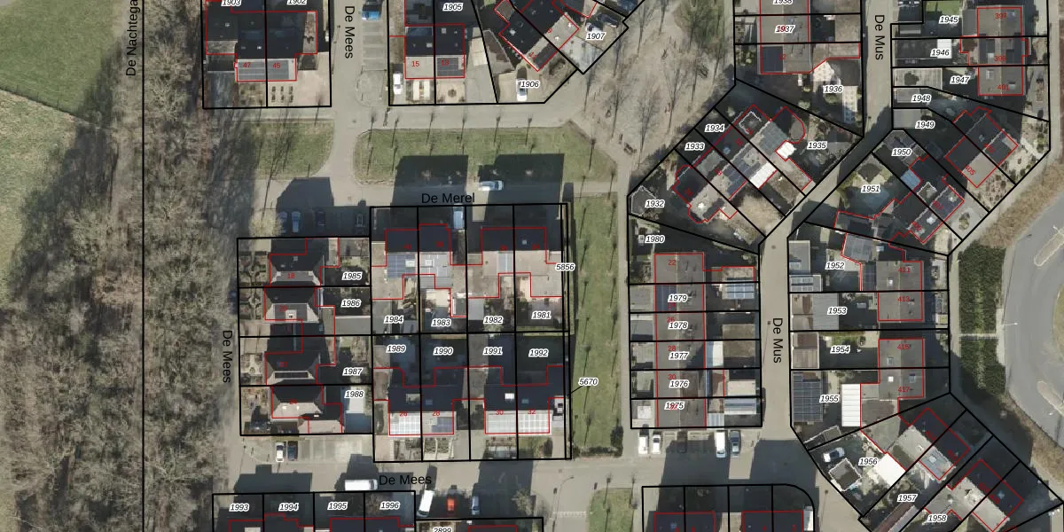 Het perceel waarop De Merel 34 staat heeft een oppervlakte van 216 m². Dit is een middelgroot perceel. De perceeloppervlakte wordt geregistreerd door het Kadaster. Gedetailleerde informatie over de maten van dit perceel kunt u vinden in het rapport Kadastrale kaart met maatvoering van De Merel 34.