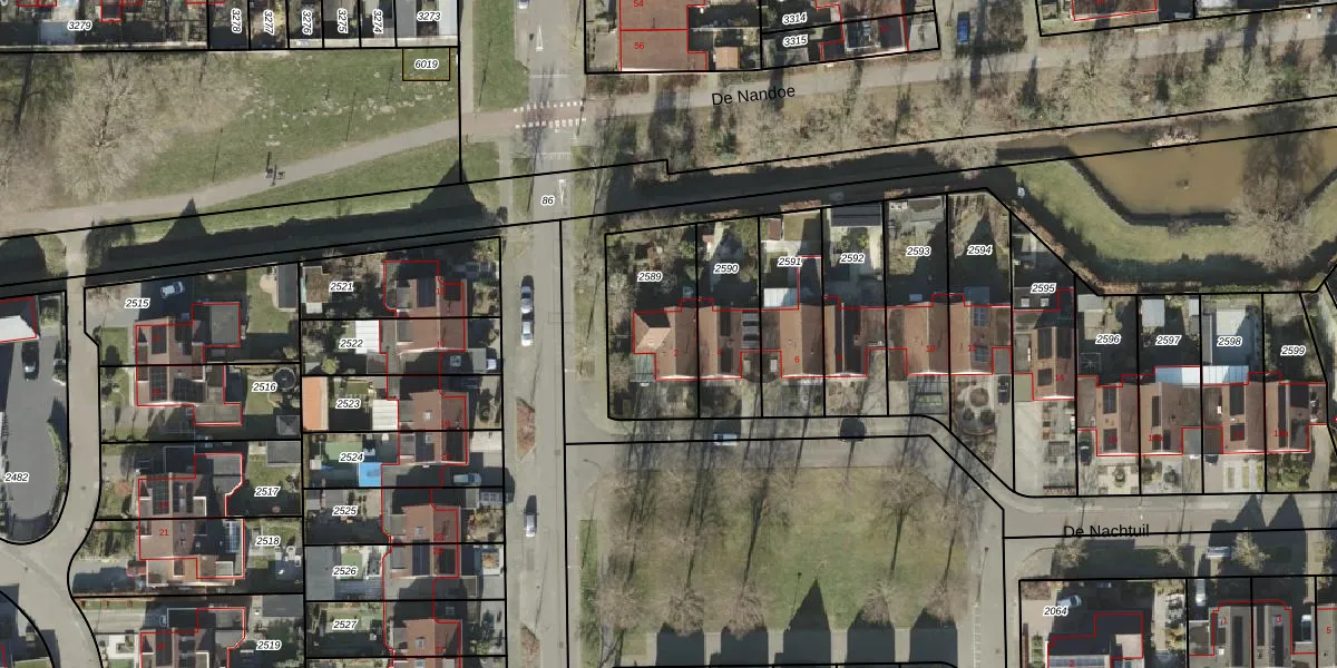 De Nachtuil 2 is gelegen op kadastraal perceel AML01N2589. Deze kadastrale aanduiding is uniek en wordt gebruikt door het Kadaster om eigendomsrechten en andere zakelijke rechten vast te leggen. Het perceel maakt onderdeel uit van de kadastrale gemeente Ambt-Almelo.