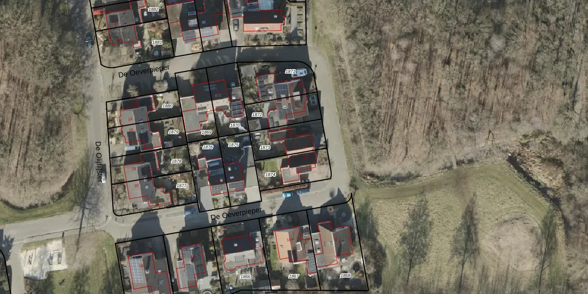 Gebruik de zoekbalk of klik op een perceel voor informatie over de adressen binnen dit perceel.