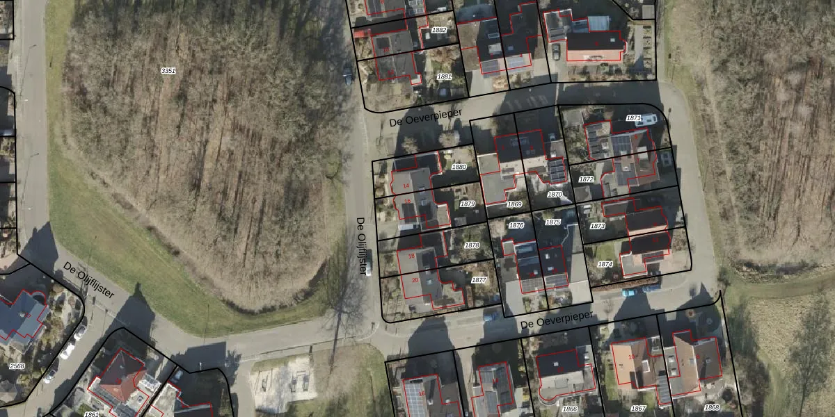 De Olijflijster 16 is gelegen op kadastraal perceel AML01N1879. Deze kadastrale aanduiding is uniek en wordt gebruikt door het Kadaster om eigendomsrechten en andere zakelijke rechten vast te leggen. Het perceel maakt onderdeel uit van de kadastrale gemeente Ambt-Almelo.