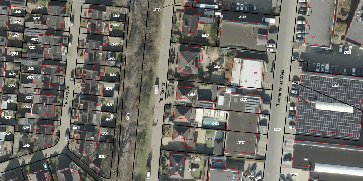 De Parkiet 6 is gelegen op kadastraal perceel AML01N5813. Deze kadastrale aanduiding is uniek en wordt gebruikt door het Kadaster om eigendomsrechten en andere zakelijke rechten vast te leggen. Het perceel maakt onderdeel uit van de kadastrale gemeente Ambt-Almelo.