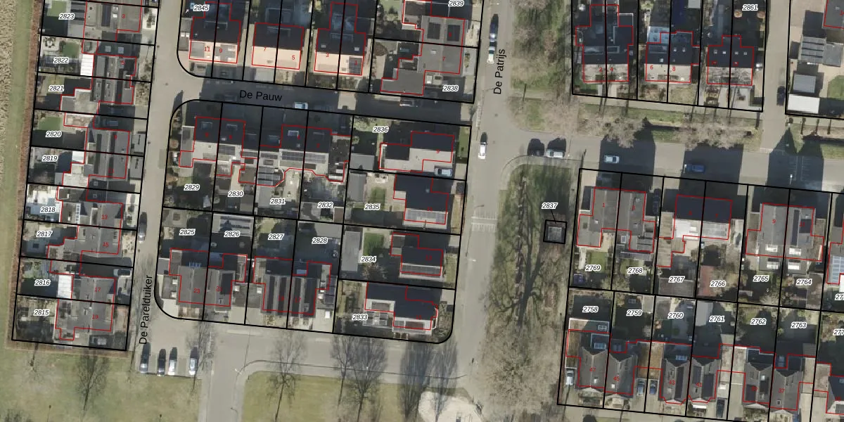 Het perceel waarop De Patrijs 11 staat heeft een oppervlakte van 366 m². Dit is een groot perceel. De perceeloppervlakte wordt geregistreerd door het Kadaster. Gedetailleerde informatie over de maten van dit perceel kunt u vinden in het rapport Kadastrale kaart met maatvoering van De Patrijs 11.