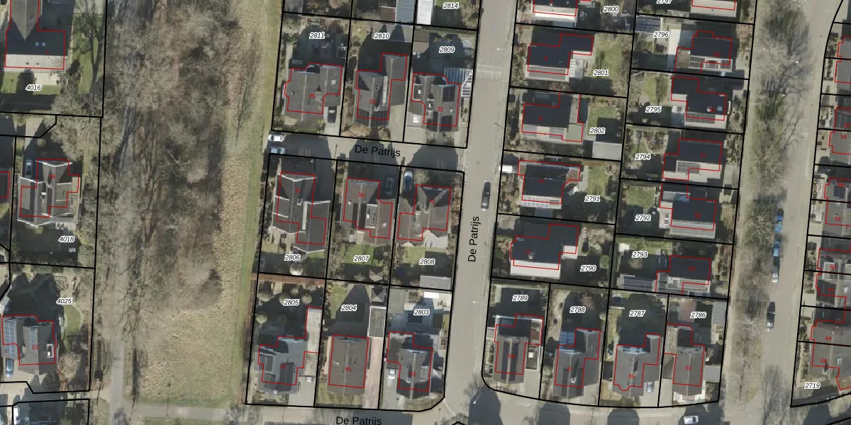 De Patrijs 41 is gelegen op kadastraal perceel AML01N2808. Deze kadastrale aanduiding is uniek en wordt gebruikt door het Kadaster om eigendomsrechten en andere zakelijke rechten vast te leggen. Het perceel maakt onderdeel uit van de kadastrale gemeente Ambt-Almelo.