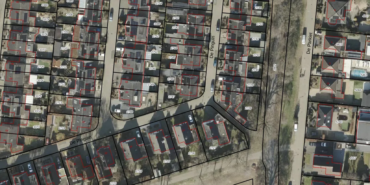 Het perceel waarop De Pinguin 19 staat heeft een oppervlakte van 252 m². Dit is een middelgroot perceel. De perceeloppervlakte wordt geregistreerd door het Kadaster. Gedetailleerde informatie over de maten van dit perceel kunt u vinden in het rapport Kadastrale kaart met maatvoering van De Pinguin 19.
