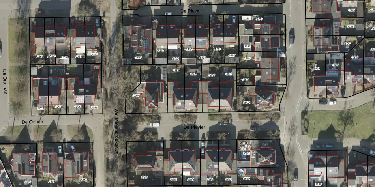 Gebruik de zoekbalk of klik op een perceel voor informatie over de adressen binnen dit perceel.