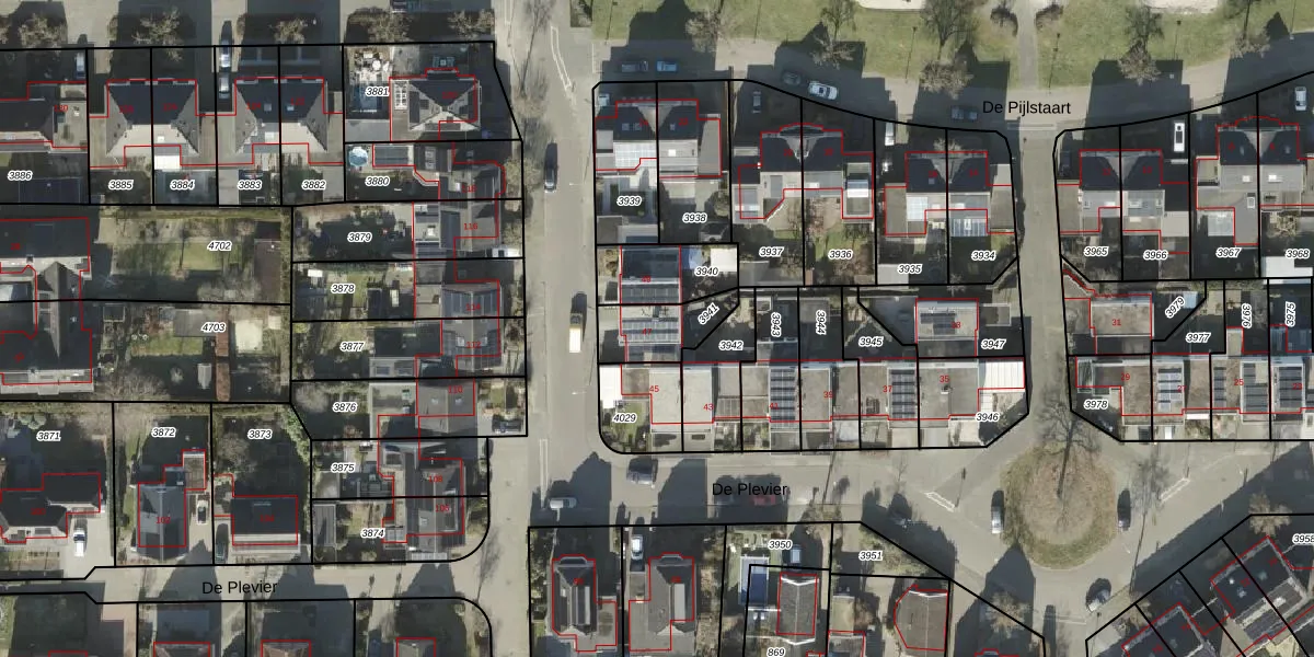Gebruik de zoekbalk of klik op een perceel voor informatie over de adressen binnen dit perceel.