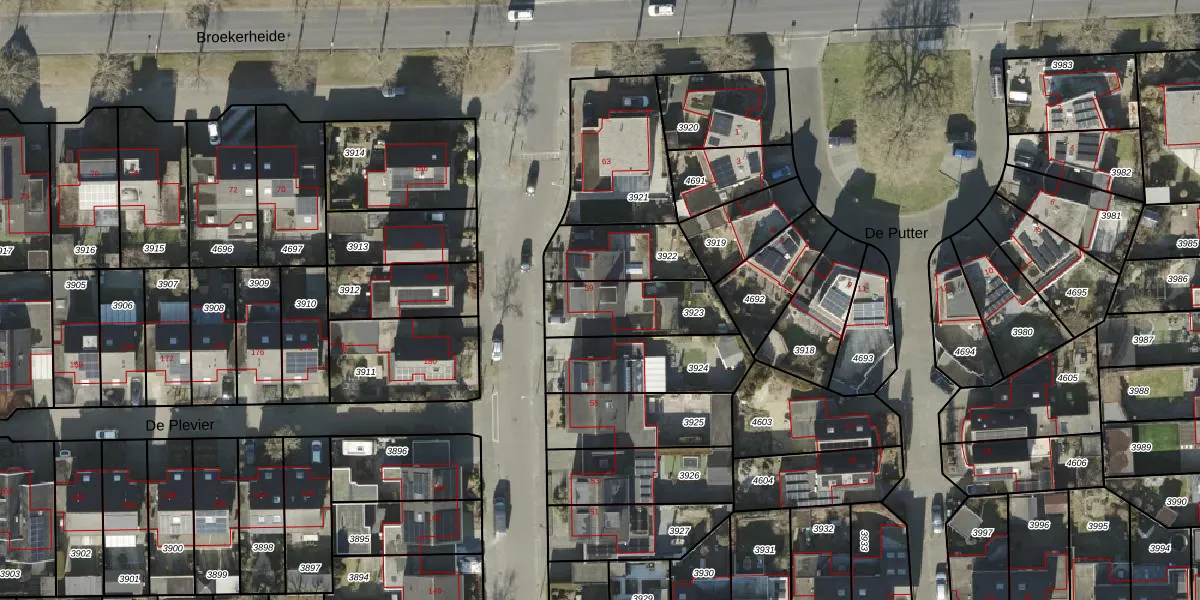 Gebruik de zoekbalk of klik op een perceel voor informatie over de adressen binnen dit perceel.