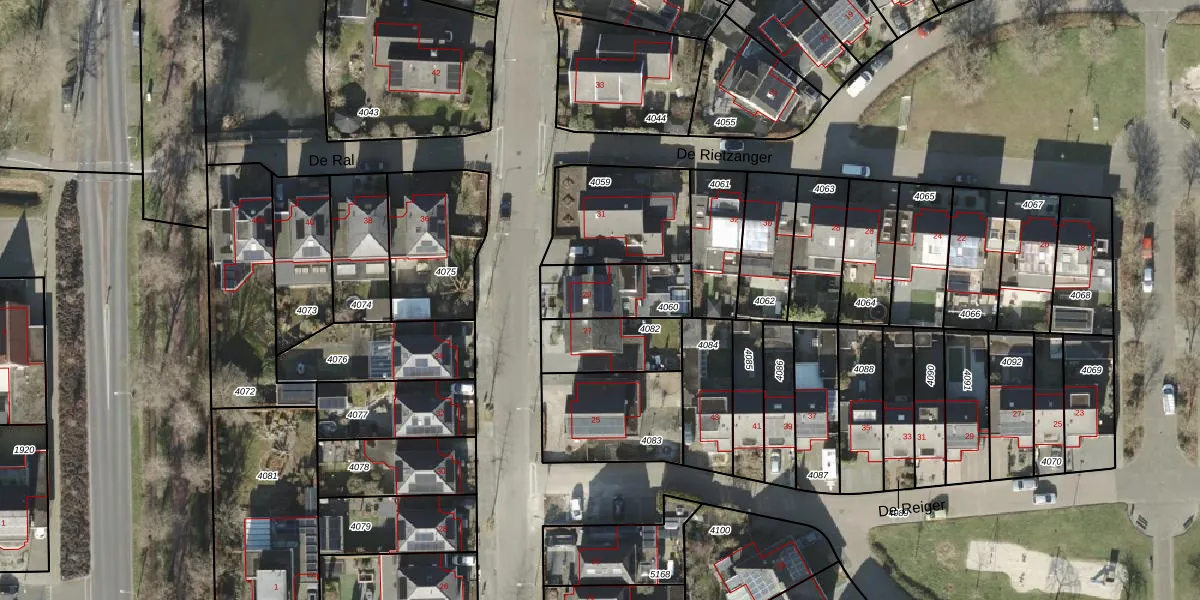 Gebruik de zoekbalk of klik op een perceel voor informatie over de adressen binnen dit perceel.