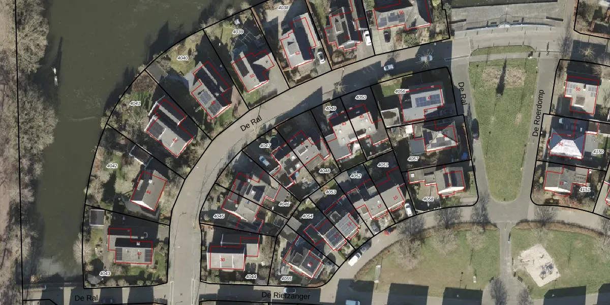 Het perceel waarop De Ral 41 staat heeft een oppervlakte van 255 m². Dit is een middelgroot perceel. De perceeloppervlakte wordt geregistreerd door het Kadaster. Gedetailleerde informatie over de maten van dit perceel kunt u vinden in het rapport Kadastrale kaart met maatvoering van De Ral 41.