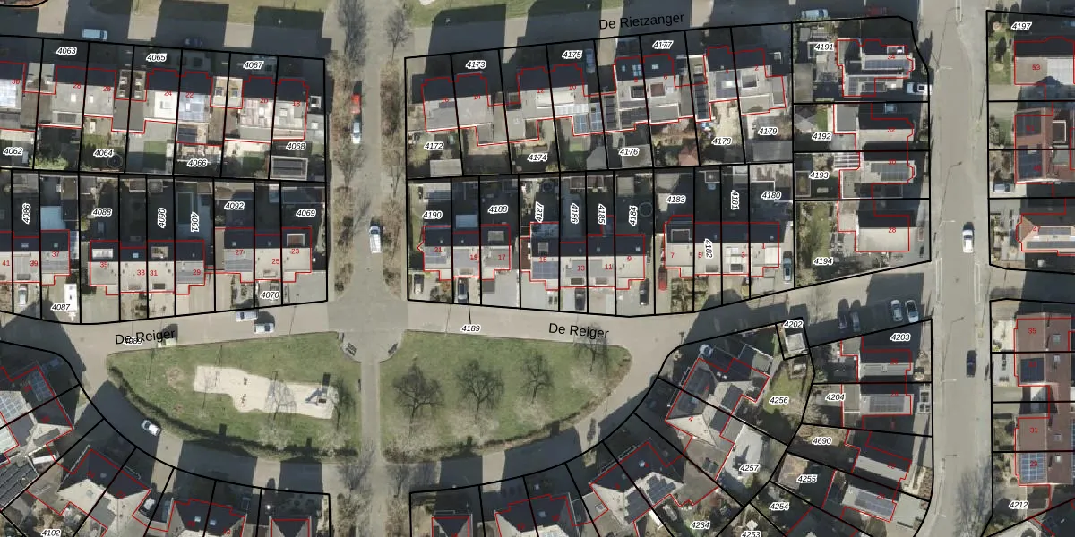 De Reiger 15 is gelegen op kadastraal perceel AML01N4187. Deze kadastrale aanduiding is uniek en wordt gebruikt door het Kadaster om eigendomsrechten en andere zakelijke rechten vast te leggen. Het perceel maakt onderdeel uit van de kadastrale gemeente Ambt-Almelo.