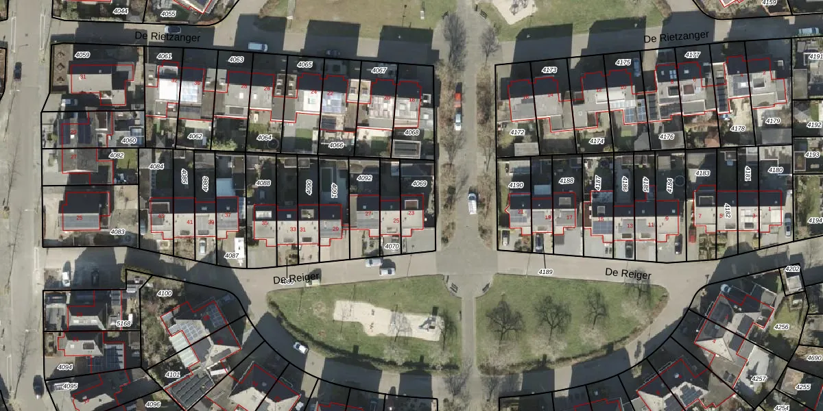 De Reiger 23 is gelegen op kadastraal perceel AML01N4069. Deze kadastrale aanduiding is uniek en wordt gebruikt door het Kadaster om eigendomsrechten en andere zakelijke rechten vast te leggen. Het perceel maakt onderdeel uit van de kadastrale gemeente Ambt-Almelo.