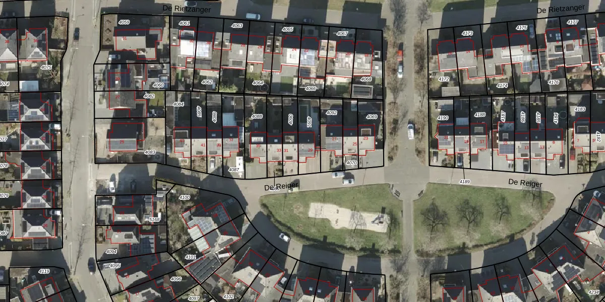 De Reiger 29 is gelegen op kadastraal perceel AML01N4091. Deze kadastrale aanduiding is uniek en wordt gebruikt door het Kadaster om eigendomsrechten en andere zakelijke rechten vast te leggen. Het perceel maakt onderdeel uit van de kadastrale gemeente Ambt-Almelo.
