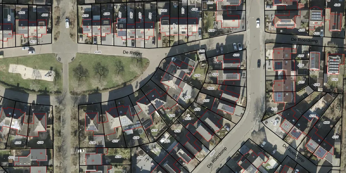 Het perceel waarop De Reiger 4 staat heeft een oppervlakte van 305 m². Dit is een groot perceel. De perceeloppervlakte wordt geregistreerd door het Kadaster. Gedetailleerde informatie over de maten van dit perceel kunt u vinden in het rapport Kadastrale kaart met maatvoering van De Reiger 4.