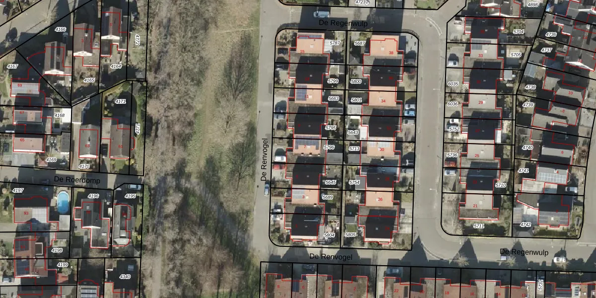 Het perceel waarop De Renvogel 7 staat heeft een oppervlakte van 202 m². Dit is een middelgroot perceel. De perceeloppervlakte wordt geregistreerd door het Kadaster. Gedetailleerde informatie over de maten van dit perceel kunt u vinden in het rapport Kadastrale kaart met maatvoering van De Renvogel 7.