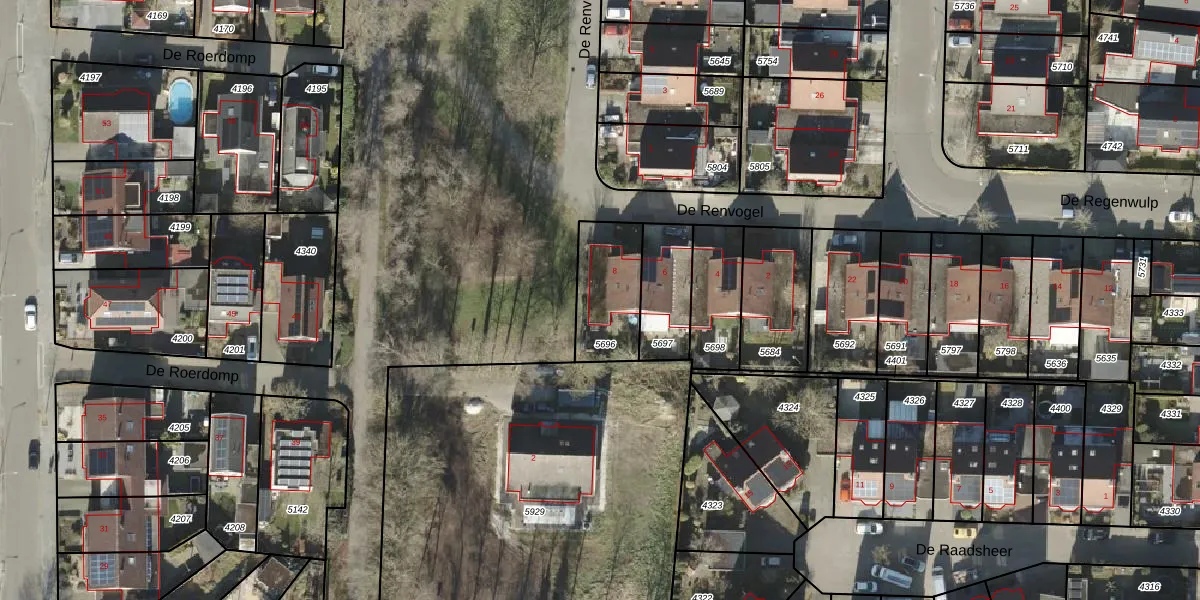 De Renvogel 8 is gelegen op kadastraal perceel AML01N5696. Deze kadastrale aanduiding is uniek en wordt gebruikt door het Kadaster om eigendomsrechten en andere zakelijke rechten vast te leggen. Het perceel maakt onderdeel uit van de kadastrale gemeente Ambt-Almelo.