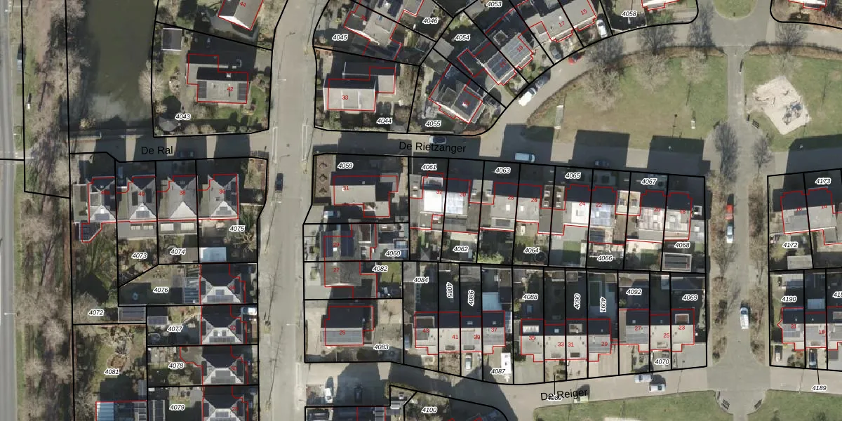 Het perceel waarop De Rietzanger 32 staat heeft een oppervlakte van 209 m². Dit is een middelgroot perceel. De perceeloppervlakte wordt geregistreerd door het Kadaster. Gedetailleerde informatie over de maten van dit perceel kunt u vinden in het rapport Kadastrale kaart met maatvoering van De Rietzanger 32.