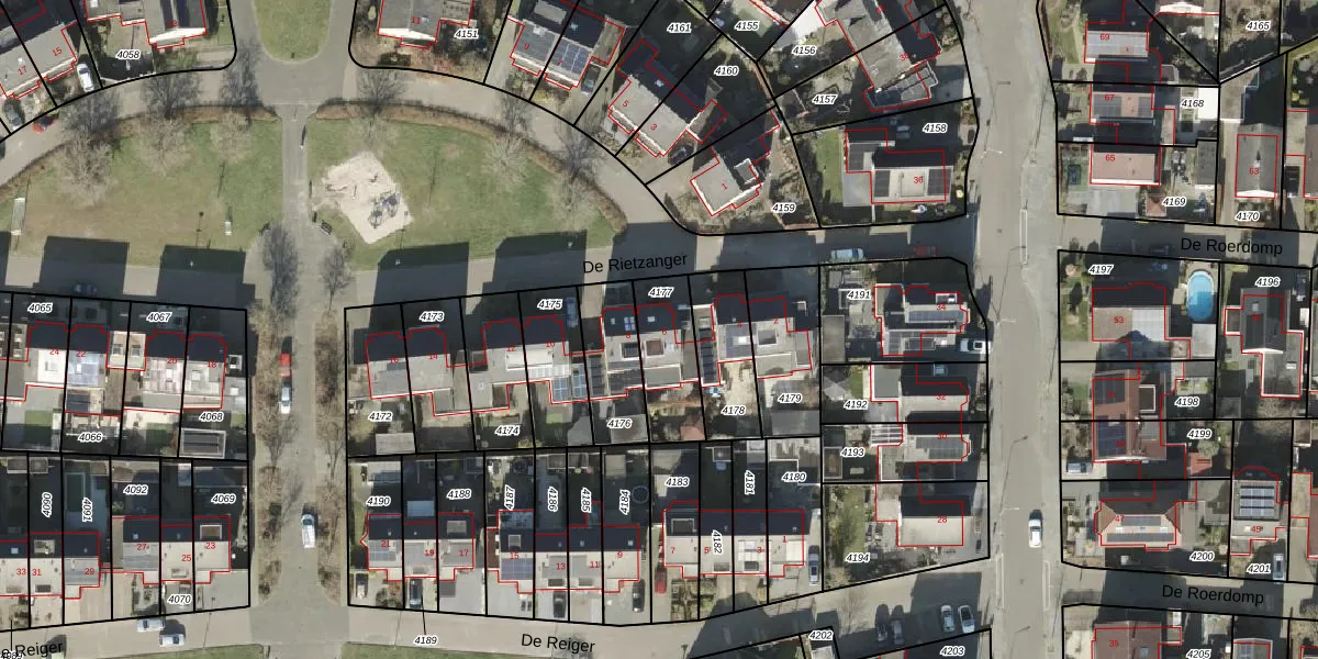 Het perceel waarop De Rietzanger 6 staat heeft een oppervlakte van 214 m². Dit is een middelgroot perceel. De perceeloppervlakte wordt geregistreerd door het Kadaster. Gedetailleerde informatie over de maten van dit perceel kunt u vinden in het rapport Kadastrale kaart met maatvoering van De Rietzanger 6.