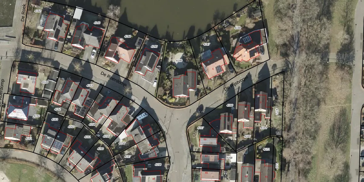 Het perceel waarop De Rijstvogel 2 staat heeft een oppervlakte van 734 m². Dit is een groot perceel. De perceeloppervlakte wordt geregistreerd door het Kadaster. Gedetailleerde informatie over de maten van dit perceel kunt u vinden in het rapport Kadastrale kaart met maatvoering van De Rijstvogel 2.