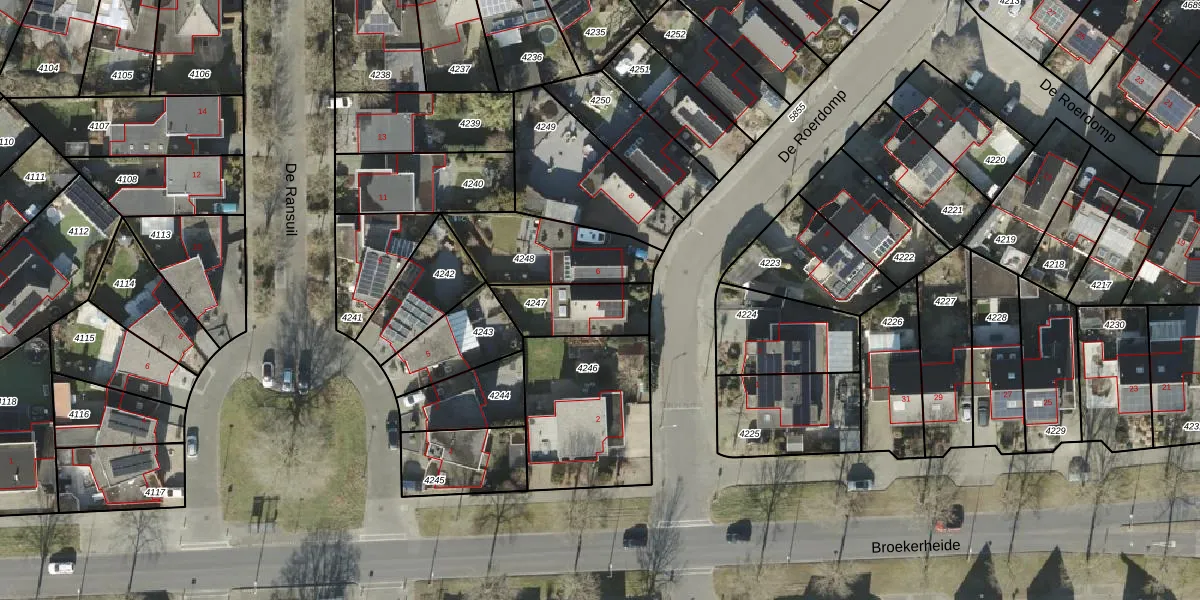 Gebruik de zoekbalk of klik op een perceel voor informatie over de adressen binnen dit perceel.