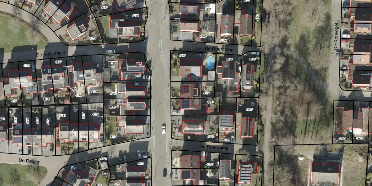 Gebruik de zoekbalk of klik op een perceel voor informatie over de adressen binnen dit perceel.