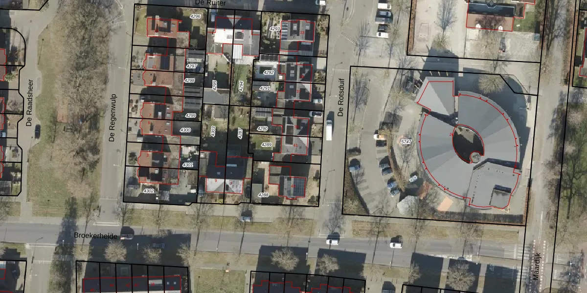 Het perceel waarop De Rotsduif 41 staat heeft een oppervlakte van 224 m². Dit is een middelgroot perceel. De perceeloppervlakte wordt geregistreerd door het Kadaster. Gedetailleerde informatie over de maten van dit perceel kunt u vinden in het rapport Kadastrale kaart met maatvoering van De Rotsduif 41.