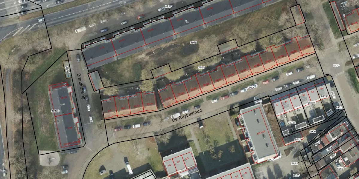 Het perceel waarop De Ruyterstraat 22 staat heeft een oppervlakte van 2420 m². Dit is een zeer groot perceel. De perceeloppervlakte wordt geregistreerd door het Kadaster. Gedetailleerde informatie over de maten van dit perceel kunt u vinden in het rapport Kadastrale kaart met maatvoering van De Ruyterstraat 22.