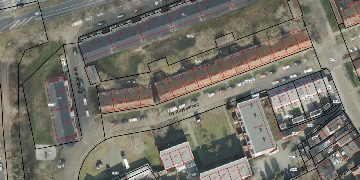 Het perceel waarop De Ruyterstraat 24 staat heeft een oppervlakte van 2420 m². Dit is een zeer groot perceel. De perceeloppervlakte wordt geregistreerd door het Kadaster. Gedetailleerde informatie over de maten van dit perceel kunt u vinden in het rapport Kadastrale kaart met maatvoering van De Ruyterstraat 24.