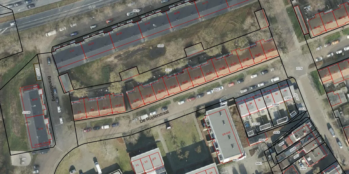 De Ruyterstraat 32 is gelegen op kadastraal perceel AML01B5970. Deze kadastrale aanduiding is uniek en wordt gebruikt door het Kadaster om eigendomsrechten en andere zakelijke rechten vast te leggen. Het perceel maakt onderdeel uit van de kadastrale gemeente Ambt-Almelo.