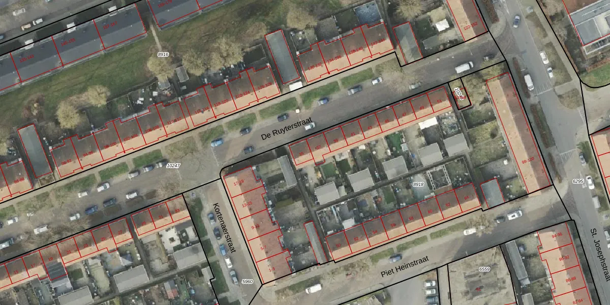 De Ruyterstraat 35 is gelegen op kadastraal perceel AML01B8918. Deze kadastrale aanduiding is uniek en wordt gebruikt door het Kadaster om eigendomsrechten en andere zakelijke rechten vast te leggen. Het perceel maakt onderdeel uit van de kadastrale gemeente Ambt-Almelo.