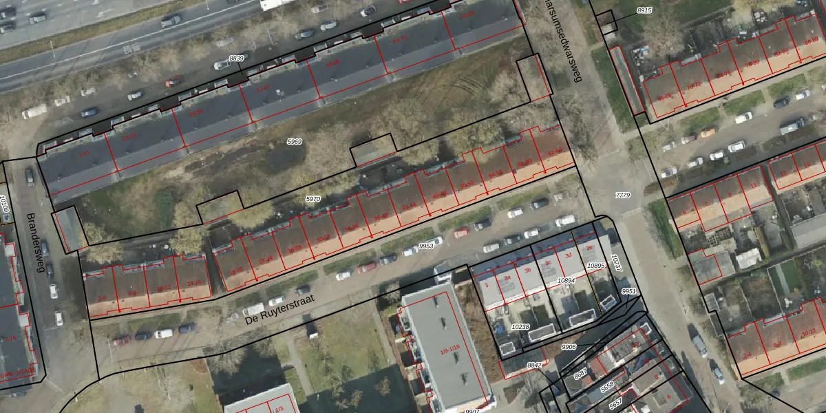 De Ruyterstraat 42 is gelegen op kadastraal perceel AML01B5970. Deze kadastrale aanduiding is uniek en wordt gebruikt door het Kadaster om eigendomsrechten en andere zakelijke rechten vast te leggen. Het perceel maakt onderdeel uit van de kadastrale gemeente Ambt-Almelo.
