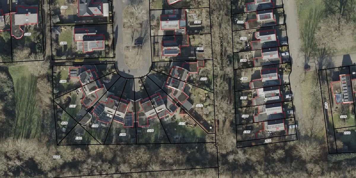 Het perceel waarop De Schöppe 28 staat heeft een oppervlakte van 563 m². Dit is een groot perceel. De perceeloppervlakte wordt geregistreerd door het Kadaster. Gedetailleerde informatie over de maten van dit perceel kunt u vinden in het rapport Kadastrale kaart met maatvoering van De Schöppe 28.