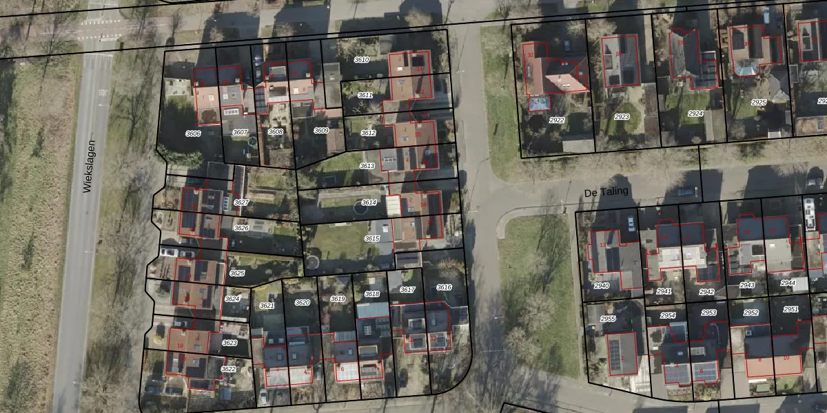 Het perceel waarop De Taling 16 staat heeft een oppervlakte van 331 m². Dit is een groot perceel. De perceeloppervlakte wordt geregistreerd door het Kadaster. Gedetailleerde informatie over de maten van dit perceel kunt u vinden in het rapport Kadastrale kaart met maatvoering van De Taling 16.