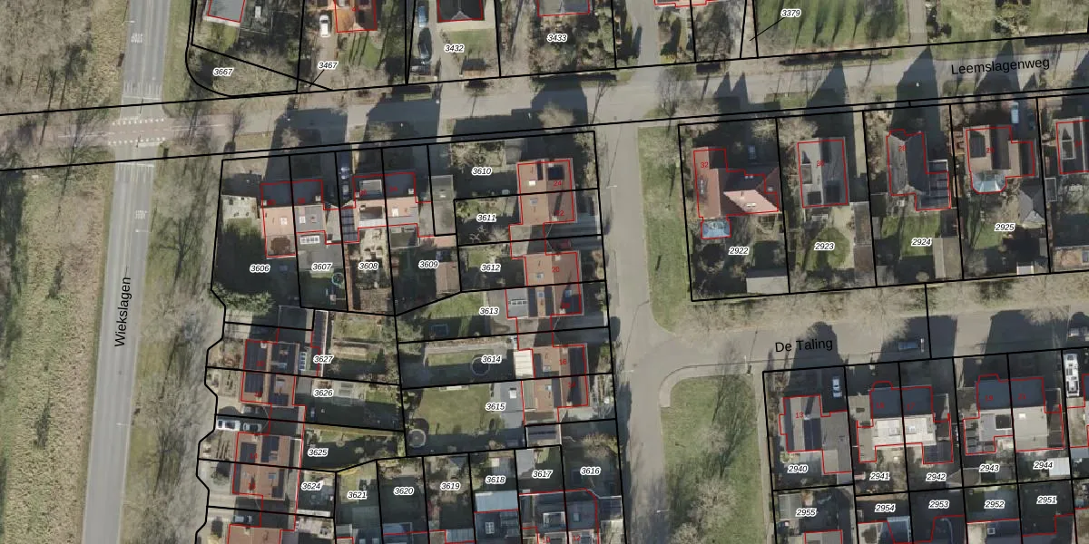 Het perceel waarop De Taling 20 staat heeft een oppervlakte van 226 m². Dit is een middelgroot perceel. De perceeloppervlakte wordt geregistreerd door het Kadaster. Gedetailleerde informatie over de maten van dit perceel kunt u vinden in het rapport Kadastrale kaart met maatvoering van De Taling 20.