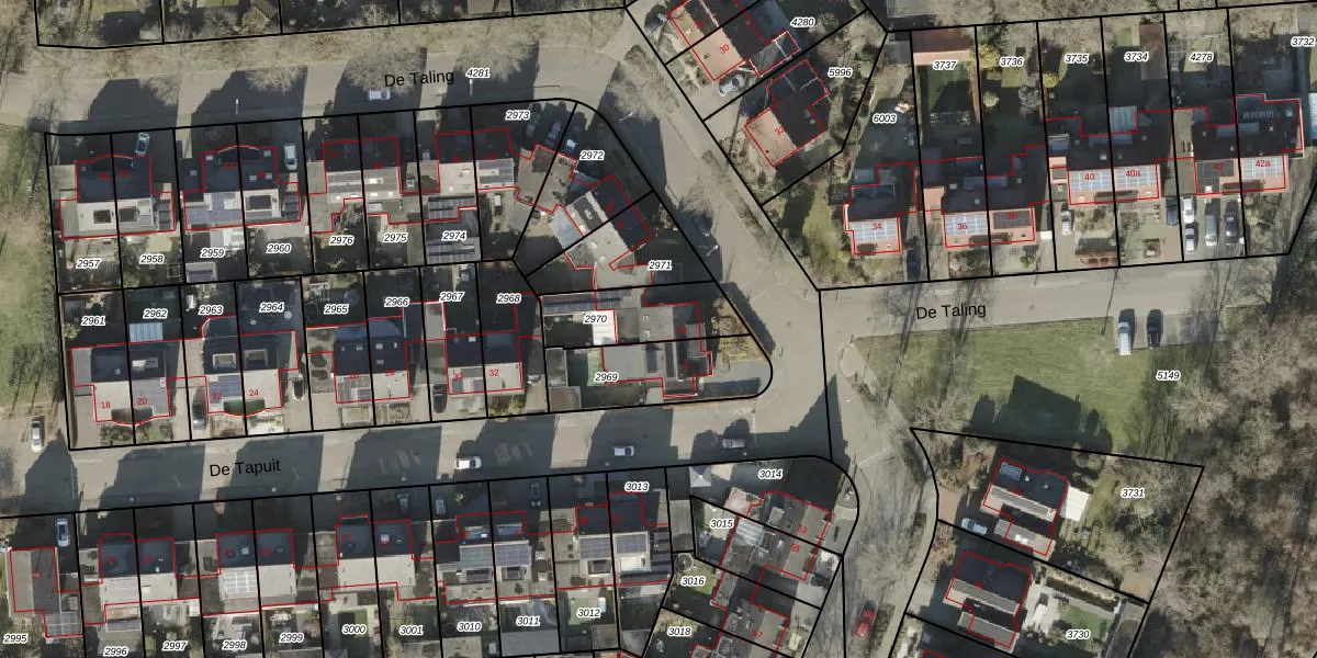 Het perceel waarop De Taling 49 staat heeft een oppervlakte van 248 m². Dit is een middelgroot perceel. De perceeloppervlakte wordt geregistreerd door het Kadaster. Gedetailleerde informatie over de maten van dit perceel kunt u vinden in het rapport Kadastrale kaart met maatvoering van De Taling 49.