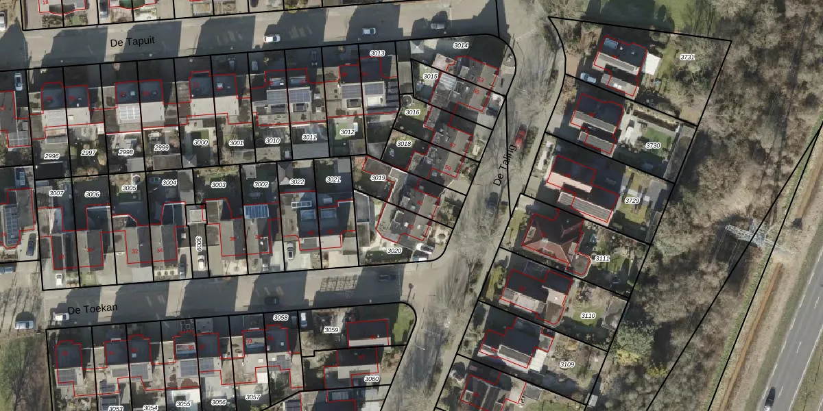 Het perceel waarop De Taling 61 staat heeft een oppervlakte van 242 m². Dit is een middelgroot perceel. De perceeloppervlakte wordt geregistreerd door het Kadaster. Gedetailleerde informatie over de maten van dit perceel kunt u vinden in het rapport Kadastrale kaart met maatvoering van De Taling 61.
