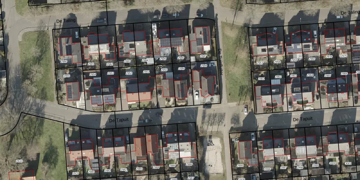 Het perceel waarop De Tapuit 14 staat heeft een oppervlakte van 240 m². Dit is een middelgroot perceel. De perceeloppervlakte wordt geregistreerd door het Kadaster. Gedetailleerde informatie over de maten van dit perceel kunt u vinden in het rapport Kadastrale kaart met maatvoering van De Tapuit 14.