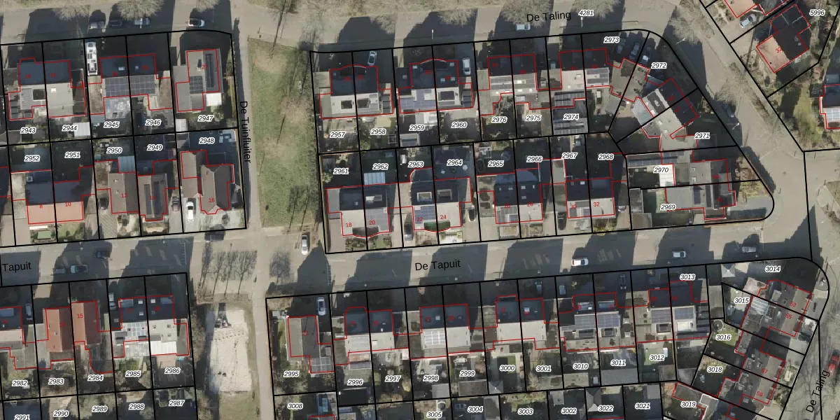 Het perceel waarop De Tapuit 22 staat heeft een oppervlakte van 204 m². Dit is een middelgroot perceel. De perceeloppervlakte wordt geregistreerd door het Kadaster. Gedetailleerde informatie over de maten van dit perceel kunt u vinden in het rapport Kadastrale kaart met maatvoering van De Tapuit 22.
