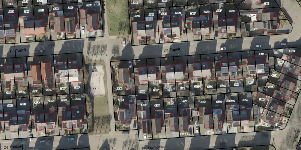 Het perceel waarop De Tapuit 25 staat heeft een oppervlakte van 243 m². Dit is een middelgroot perceel. De perceeloppervlakte wordt geregistreerd door het Kadaster. Gedetailleerde informatie over de maten van dit perceel kunt u vinden in het rapport Kadastrale kaart met maatvoering van De Tapuit 25.